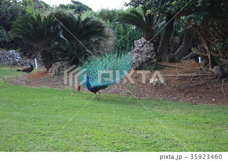 ゴルフ場の孔雀の写真素材